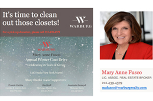 Such as Warburg’s Mary Anne Fusco, who’s been hosting an annual coat drive with