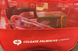 Colgate-Palmolive has truly blossomed into a lasting one. Recently, we were lucky enough to receive a shipment of over 5,000 "personal care kits" from the company.