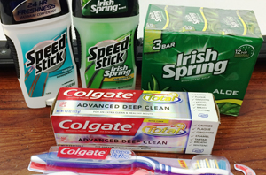 Corporate volunteers spent the afternoon preparing dozens of "personal care kits" for our clients who may not necessarily have the means to purchase these essential items. These kits held full size products including: a 3-pack of Irish Spring soap, two sticks of deodorants, two toothbrushes and a tube of Colgate toothpaste.