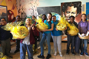 Four days before Easter, we distributed 100 of them to the very excited students at PS 214x in the Bronx to ensure that their families could enjoy a hearty holiday meal. Thank you to Mrs. Jagarnath of P.S. 214x for helping us to coordinate this distribution.