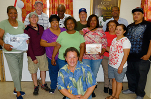 Across the parking lot in a separate building-residents line up for weekly groceries.