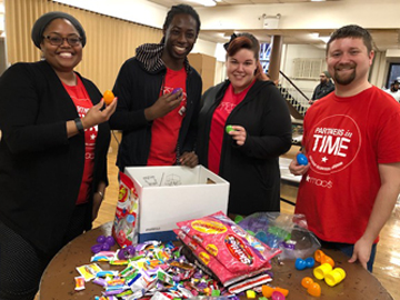 Our friends from Macy's came together at St John's parish recently to prepare Easter dinner baskets for families in need. Filling baskets with food found on a traditional Easter celebration table – canned ham, sweet potatoes, green beans, corn, mashed potatoes and more! – these baskets were then shipped out to multiple locations where families were able to pick up a meal for them to serve at Easter. In all, more than 200 Easter dinner baskets were prepared and distributed.