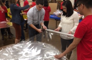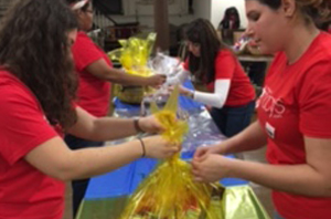 "Sharing the Feast" was the perfect theme on Tuesday, November 15th as over 50 volunteers worked together, to prepare Thanksgiving Dinner Baskets. These baskets were filled with all of the fixings for a delicious holiday meal, including stuffing, green beans, cranberry sauce, mash potatoes, corn, sweet potatoes and marshmallows.