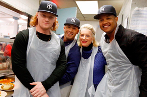 Gleyber Torres, Clint Frazier and Starlin Castro of the NYY serving meals.