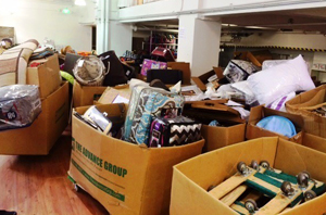 Sorting through 20 boxes of donations from Ross!