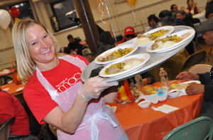 Our invited guests were over 300 local food pantry clients (including adults, children and seniors) in need of a helping hand. Upon arrival, these clients received a Thanksgiving-style meal, served by employees from