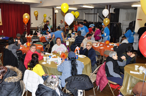 "Thanksgiving in February" meal in the church hall at St. John the Baptist Roman Catholic Church in Manhattan, NY.