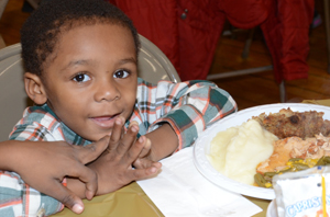 Our invited guests were over 400 local food pantry clients (including adults, children and seniors) in need of a helping hand. Upon arrival, these clients received a Thanksgiving-style meal, provided by "A World of Food" and served by employees from Macy's and Con Edison.
