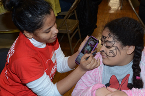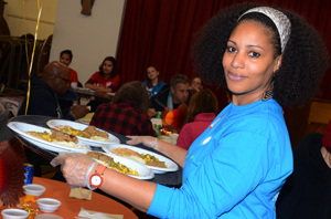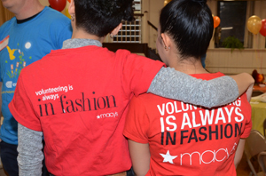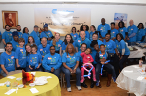 "Thanksgiving in February" was co-sponsored by our friends at Macy’s and ConEd, who collectively sent almost four dozen volunteers to St John’s church hall, all of whom helped serve food to literally hundreds of people in need. St. John’s Bread of Life Food Pantry and the Grandparents Advocacy Project and their clients were welcome guests. We served a delicious and filling Thanksgiving-style meal of turkey with all the trimmings. In addition, every adult guest left with a hygiene kit (donated by Colgate) and every kid received a plush toy (donated by Animal Adventure).