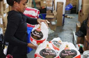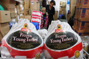 | Distribution took place in the week and days leading up to Thanksgiving. | This location is happily unpacking their frozen turkeys shipment! |