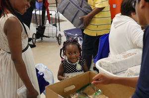 2018 Women of Valor Honoree Melissa Armenti hands out PB+Js.