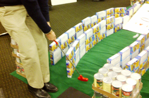 The two-hour long program culminated with the 82 cases of canned and boxed food, which was used during the activity, to be donated to St. Francis Food Pantries and Shelters. All of these items were then distributed to a large food pantry that we help to support in Brooklyn, New York.
