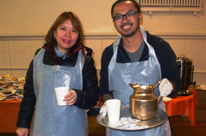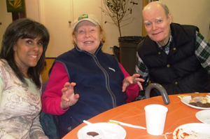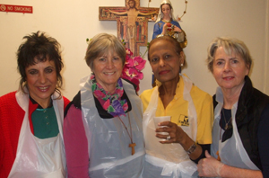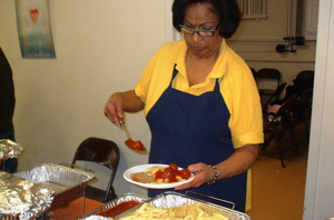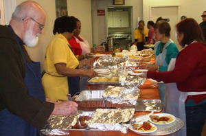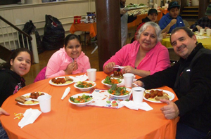 Our guests for the day were people were homeless or simply in need of a helping hand. Volunteers waited on hundreds of these special guests, serving them "restaurant style" at numbered tables. The hearty meal featured a delicious menu that included: penne pasta with meatballs, herb-spiced chicken, rice, salad, rolls, coffee, tea, cake and cookies.