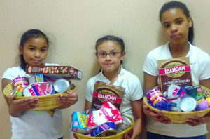 Annual Bag Hunger Month, our friends from Macy's spent an afternoon packing 200 "Easter Dinner Baskets." These baskets were chock full of ingredients to make a delicious dinner, including: a canned ham, sweet potatoes, green beans, corn, mashed potatoes and more!
