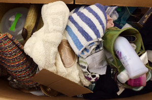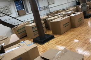 Volunteers help organize and box up the the amazing variety of items donated by Ross stores.