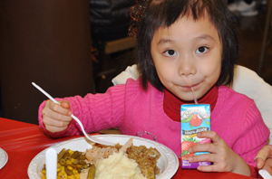 "Thanksgiving in February" meal in the church hall at St. John the Baptist Roman Catholic Church in Manhattan, NY.