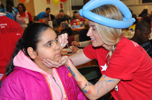 Our invited guests were over 300 local food pantry clients (including adults, children and seniors) in need of a helping hand. Upon arrival, these clients received a Thanksgiving-style meal, served by employees from