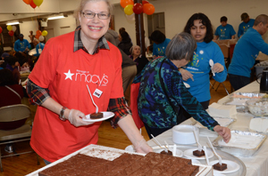 Our invited guests were over 400 local food pantry clients (including adults, children and seniors) in need of a helping hand. Upon arrival, these clients received a Thanksgiving-style meal, provided by "A World of Food" and served by employees from Macy's and Con Edison.
